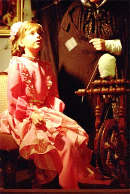 Beim Anblick des alten Spinnrades auf der Bühne interessierte