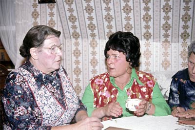beiden alten Mädchen bei der klatschsüchtigen und kaffee- und